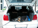 | När jag får chansen så åker jag bil. Här ligger jag i Shrekans Polo och gillar livet. Hoppas dom stannar länge så jag får sova en stund. Efter att jag sovit ska jag busa omkring på Shreks tomt eller så lägger jag mig under äppelträdet och fortsätter att mysa.Ja ja jag har ätit lite på bilen också! /Shrek |